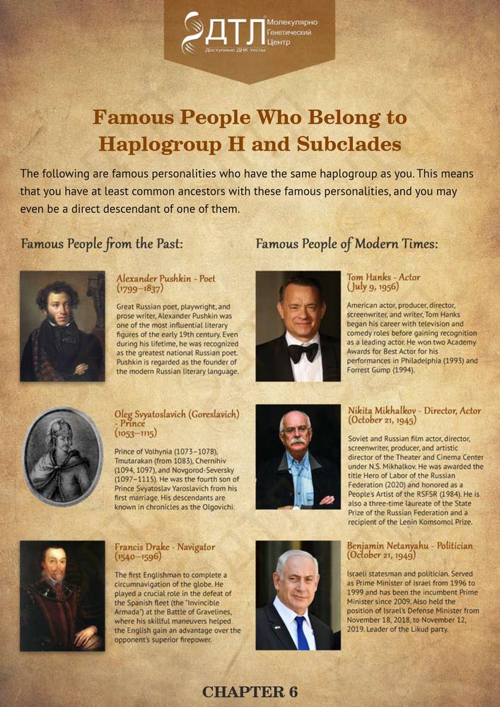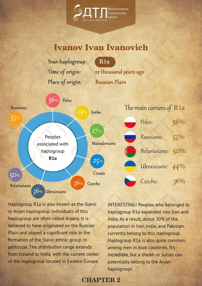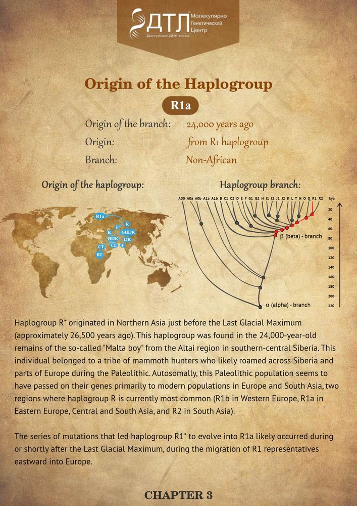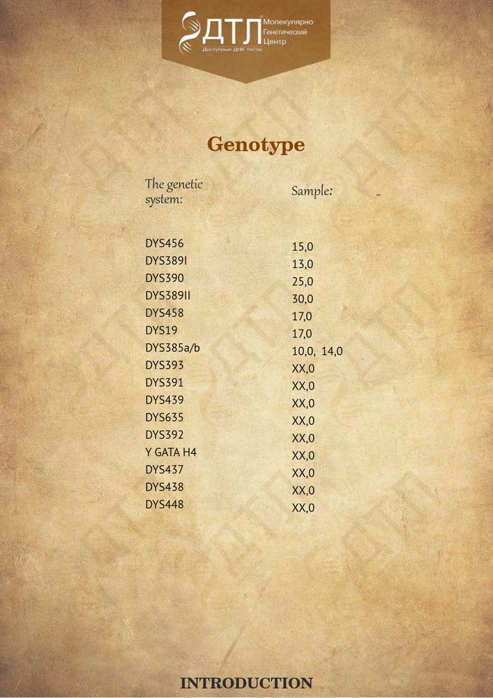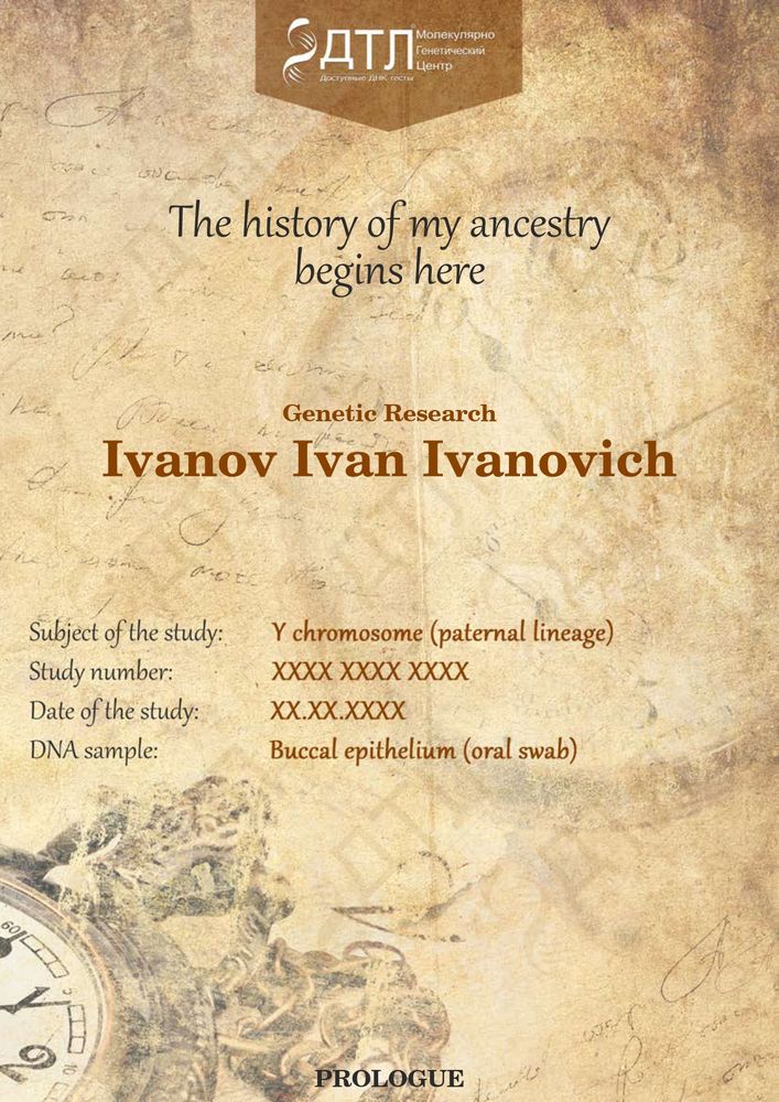 - Male line (Y-chromosome analysis) — allows tracking of the ancient origin of the paternal line.