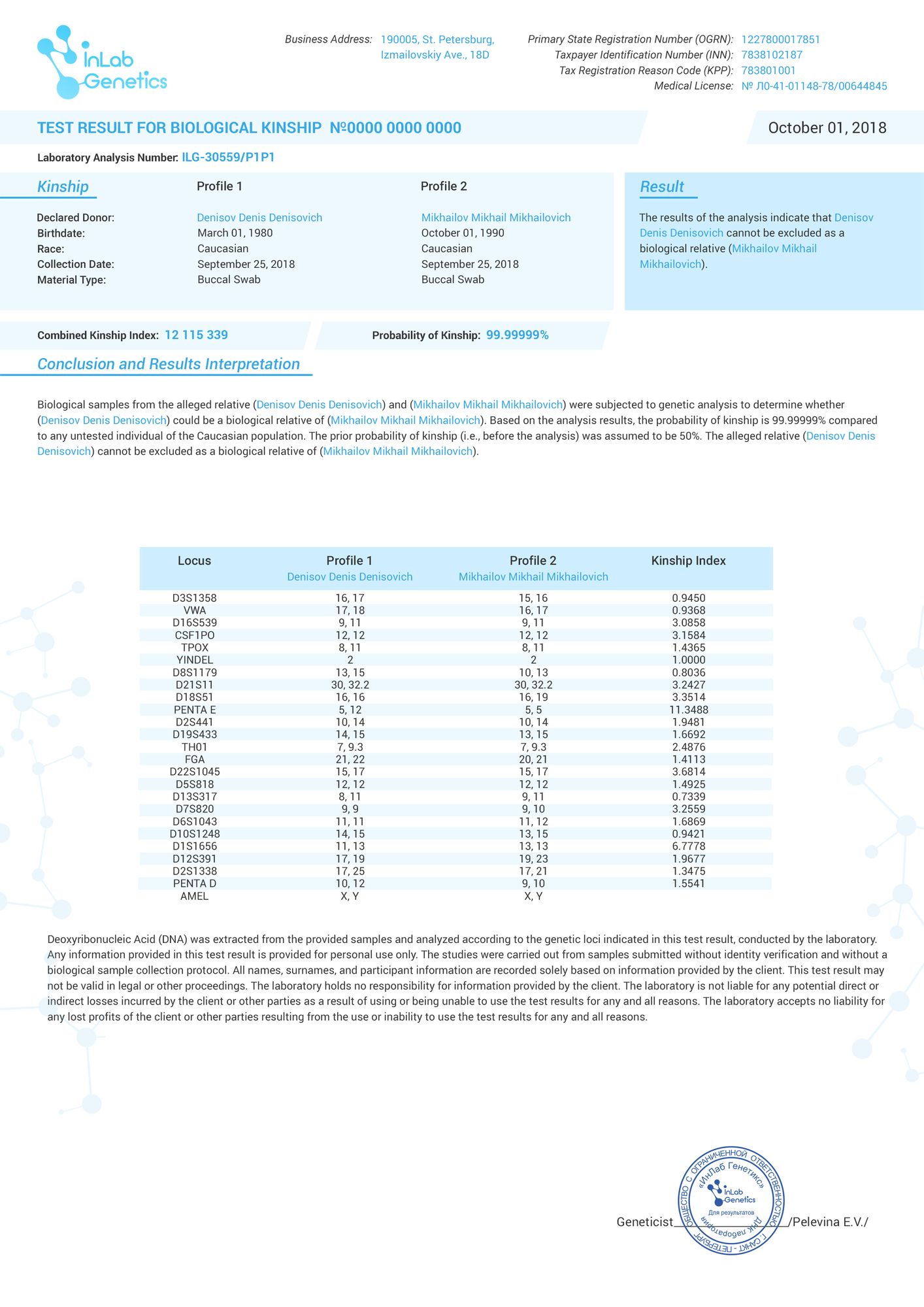 - If you have taken a legal DNA test, we can send the forensic genetic report to the address of the court.